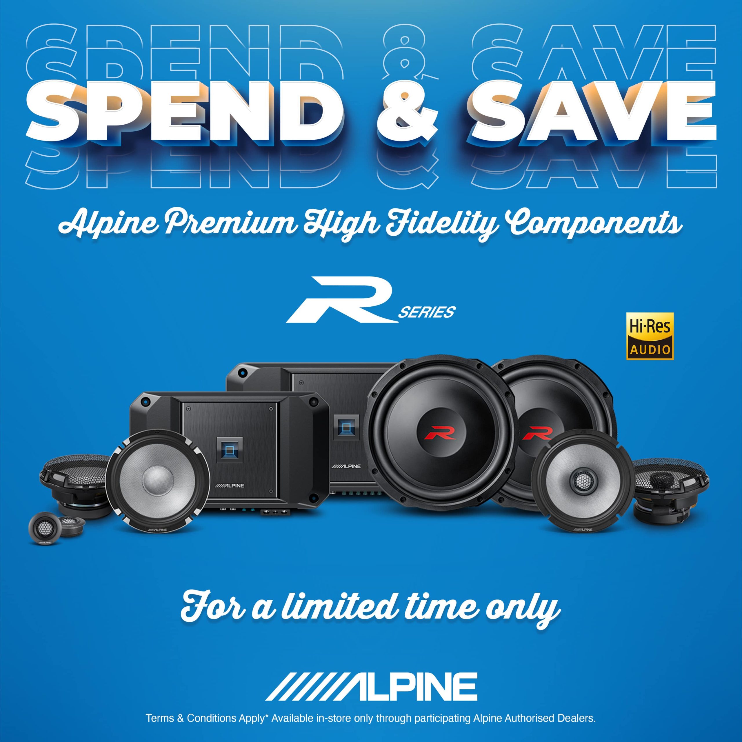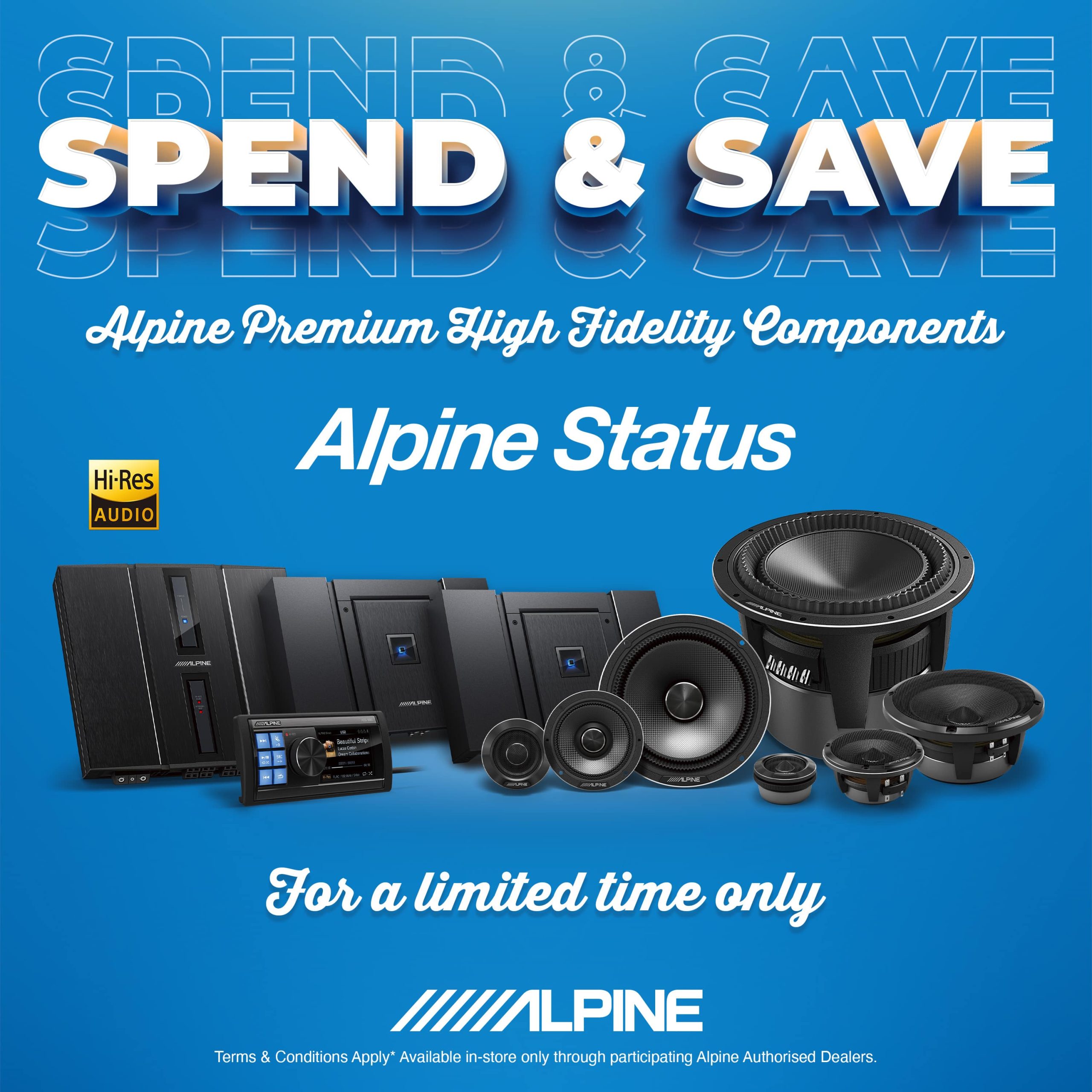 Visit your local participating Alpine Authorised Dealer to claim your Spend & Save discount – offer is available in-store only, while stocks last.